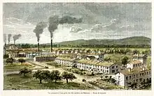 In 1852 the Societe Industrielle de Mulhouse began construction on cités ouvrières, or worker's towns. This philanthropic endeavor was not led by a single company but involved numerous leading citizens, although Dollfus was credited with leading the work. Henry Roberts is credited with the inspiration and Emile Muller drew up the designs. Construction continued for the next 45 years.[3] The development was so novel and admirable that Napoleon III made 30,000 francs available to assist the project[4] and Dollfus became the Mayor of Mulhouse from 1863 to 1869. By 1885 the society had constructed 1,060 workers' houses in Mulhouse and had sold 775 of them at cost to their occupants. Each of these occupants, after about 15 years, owned a small house with a small garden.[4]