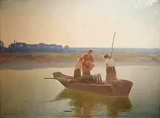 He honored his father's wishes until 1878, when he married Eugénie Mignot, the daughter of a wealthy merchant. In 1882 they moved to Paris, where his in-laws were more than happy to support his artistic aspirations. His first teacher there was the landscape painter, Émile Dardoize (1826-1901). Initially, his works were very simple and plain, inspired by Neo-Classicism. Later, he came under the influence of the Barbizon School; adding figures to his landscapes. Next, he studied at the Académie Julian with Tony Robert-Fleury and William Bouguereau, where he was the oldest student in the workshop. His first exhibit at the Salon came in 1883.