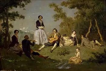 Jean Pezous (6 March 1815, Toulon - 18 April 1885, Paris) was a French painter known primarily for genre scenes; many depicting group activities. Until 1875, he also created some history paintings, but they have all disappeared. Although he is believed to have painted numerous portraits, the only one known to be his is that of the mime, Charles Deburau.