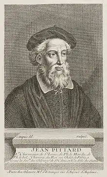Jean Pitard (born ~1228 near Bayeux, France, died in Paris at age 87, in ~1315[1][2][3]) was the royal surgeon to Louis IX, Philip the Bold and Philip the Fair of France. At his request, about the year 1270, Louis IX created the Fraternity of St. Cosmas and St. Damian,[4] which defined and organized the profession of surgeons in France.[5][6]