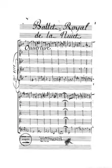 - 1 2 Lionel Sawkins in Burden & Thorp 2009, p. 39; "Ballet // Royal // De la Nuict // Divisé en quatre Parties ou quatre Veilles // Dansé // Par sa Majesté le 23e Fevrier 1653. // Recueilly // Par Philidor Laisnée En 1690" (BnF, département Musique, RES F-501) published online at Gallica on November 11, 2018.