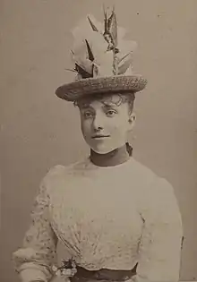 In 1891 Hugo married the journalist Léon Daudet, the son of writers Alphonse Daudet and Julia Daudet.[6][7] The marriage was performed in a civil ceremony and not a Catholic mass, out of respect for Hugo's grandfather, who had staunch anti-clerical views. The wedding was a major event in Parisian society, attracting crowds of onlookers.[8][9] They divorced in 1895 and Hugo was awarded custody of their children, preventing Daudet from seeing them for thirteen years.[5]