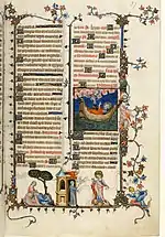 Detail of the Belleville Breviary, 1323–26 kept at the Bibliothèque Nationale, Paris. (MS. Lat. 10484, folio 37 recto) - The Treaty of Westminster of 1353, although the original document is lost, some details are known, such as a very particular clause stating that "The titles of property in Brittany are to be restored as they were before the war. If Englishmen are married to Breton Heiresses they must not be disturbed in their rights, and an amnesty is to be granted to all adherents of Montfort."