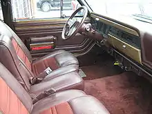 After the introduction of the Cherokee, AMC began to move the Wagoneer upmarket, and that brought high demand from a new market segment. Midway through 1978, the "Limited" was introduced, more luxuriously equipped than the earlier Super Wagoneer, offering Quadra-Trac, power disk brakes, air conditioning, power-adjustable bucket seats, power door locks, power windows, tilt steering wheel, cruise control, leather upholstery, plush carpeting, AM/FM/CB radio, leather-wrapped steering wheel, roof rack, forged aluminum wheels, and "wood grain" trim on the body sides.[14] The two-barrel, 360 cu in (5.9 L) AMC V8 engine was standard with a four-barrel, 401 cu in (6.6 L) available at extra cost. Even though the US$10,500 ($47,111 in 2022 dollars[13]) suggested retail price was in luxury Cadillac and Lincoln territory,[26] the Limited's high-level specification attracted buyers and sales were strong with a total of 28,871 Wagoneers produced in 1978, and 27,437 in 1979.