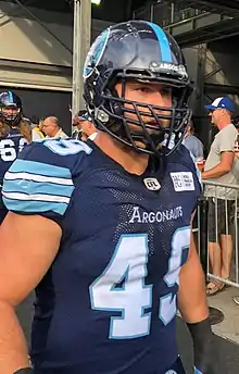 ![]() Finley before a Toronto Argonauts game in 2018. | |