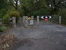 Jells Park contains an extensive network of shared use paths for cycling, walking, and running.[1] The Dandenong Creek Trail runs north—south through the park. Scotchmans Creek Trail also runs through the park from the west, connecting with Dandenong Creek Trail in the south east corner. EastLink Trail skirts the southern edge of the park. A little further north of the park, the Blind Creek Trail comes in from the east and also terminates at the Dandenong Creek Trail.