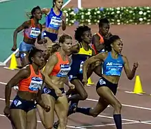Women 200 metres at 2015 Memorial Van Damme, Brussels: Candyce McGrone, Dafne Schippers, Elaine Thompson, Jeneba Tarmoh, Allyson Felix, Cynthia Bolingo and Jodie Williams.