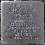 - 1 2 3 4 5 6 7 8 9 10 11 12 13 14 15 16 17 18 19 20 21 22 23 24 25 26 27 28 29 30 31 32 33 34 35 36 37 38 39 40 41 42 Rosenbaum, Wilhelm (16 December 2010). "Jenny Stucke" (in German). Solingen. Retrieved 9 May 2020.