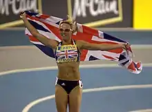 Jennifer Brenda "Jenny" Meadows (born 17 April 1981)[1][2] is a retired British athlete. Her main event was the 800 metres, although she previously competed also over the 400 metres. She won the bronze medal at the 2009 World Championships, and a silver at the 2010 World Indoor Championships. At the European Athletics Championships, Meadows took silver outdoors in 2010 and gold indoors in 2011. She also had some international success as part of the Great Britain women's 4 x 400 metres relay squad.