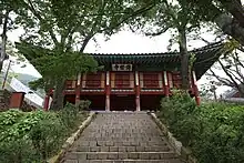 Jeondeungsa (Korean: 전등사) is a Buddhist temple located on Ganghwa Island, Incheon, South Korea. It is the oldest extant Buddhist temple in the entire Korean peninsula,[1][2] having been founded in the year 381, during the Goguryeo period.[3]
