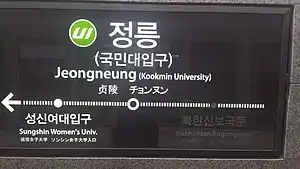 | Revised Romanization | Jeongneung-yeok | ||||||||||