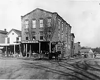 In 1885, Jephtha Lodge No. 494 moved to the third floor over O.S. Sammis & Company Dry Goods Emporium on the northwest corner of Main Street and New York Avenue, Huntington, New York where they rented until 1905.[11] O.S. Sammis sat on the Board of Directors of the Bank of Huntington, along with several Jephtha brothers including Past Masters Jesse Carll, Douglas Conklin and Joseph Irwin. Constructed in 1884, the building still stands today as a retail space.