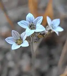 Jepsonia is a small genus of flowering plants containing three species. The Jepsonia is a perennial with a cormlike caudex, toothed leaves, and a cyme inflorescence that blooms in the fall. Jepsonia plants are native to California and Baja California.