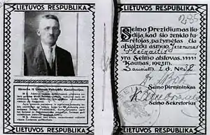 - ↑ Valiušaitis, Vidmantas (31 October 2009). "Slaptoji policija prieškario valstybininkų biografijose (2)" (in Lithuanian). Valstybė via Delfi.lt. Retrieved 12 November 2017.
