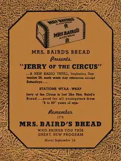 Jerry of the Circus was a 1937 syndicated radio serial broadcast for a juvenile audience. It was presented in 130 15-minute episodes of which 128 are in existence today. The series followed the adventures of Jerry Dougan and his dog Rags with the Randall Brothers Circus from the time of his father's death in the spring to the end of that year's performance season. Jerry Dougan's adventures continued in the 1937 serial Jerry at Fair Oaks.
