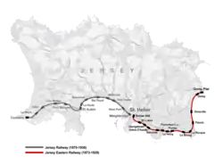 ![]() Jersey Eastern Railway on a map of former railways of Jersey | |