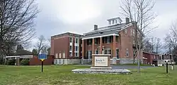 Jervis Public Library is a historic library building located in Rome in Oneida County, New York. It was built in 1858 as the residence of John B. Jervis (1795–1885). The original house is a rectangular, 2+1⁄2-story brick structure with a slate-covered gable roof and cupola. The facade features a 2-story portico supported by four massive Doric order brick columns. A 2-story library extension was added in 1926 and in 1967 a modern library facility was added. Also on the property is a 2-story carriage house built about 1860.[2]