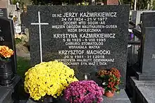 He was born 24 April 1924 in Gąsewo near Pułtusk, Poland, to a family of a teacher at the local manor. Before the war the family moved to Pułtusk, where Jerzy's father became a teacher at the local primary school. There Kaźmirkiewicz formed a Scouting troop for boys.[1] Shortly after the outbreak of the Polish Defensive War and the German take-over of Poland, both Jerzy and his father found themselves on the proscription lists of the Gestapo. Arrested in December 1939, both were sent through Auschwitz and the Dachau concentration camp to Mauthausen-Gusen concentration camp, where they spent the entire war as political prisoners.[1]
