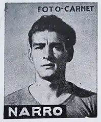 Jesús Narro Sancho (4 January 1922 – 1 July 1987) was a renowned footballer born in Tolosa, Guipúzcoa, Spain, on January 4, 1922.[2] As a left midfielder he was part of Real Murcia for three seasons scoring 21 goals, Real Sporting de Gijón for part of a season as a loan, scoring one goal and at his peak he was part of the Real Madrid C.F. for six seasons scoring 13 goals and being part of the team that won the league title in his final season in La Liga with the team "merengue" along with the great Alfredo Di Stéfano.