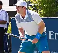 In July in Newport on the grass courts at the International Tennis Hall of Fame, he beat No. 5 seeded, world # 83 John Isner 6–3, 6–1.[63] Later in the month he beat Benjamin Becker of Germany, 6–3, 3–6, 7–6(8–6), at the Rogers Cup in Toronto.[64] In August at the New Haven, Connecticut International Series, he beat world # 67 Guillermo García López of Spain 6–0, 6–3, and world # 61 Steve Darcis, 2–0, retired. He broke into the top 100, at 96, on August 25.[2]