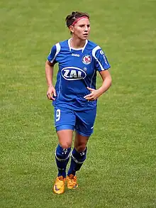 Jessica Wich began her career at the age of 6 years at SV Höfles/Vogtendorf. She then moved to TSF Theisenort followed by SV Reitsch. In 2006 Wich moved to SC Regensburg which just won promotion for the second division. She scored four goals in her first season. Just one year later at the age of 17 she moved to Potsdam and played for one of the best female German soccer clubs 1. FFC Turbine Potsdam.[1] On 26 August 2007 she scored her first Bundesliga goal against SG Wattenscheid 09. In January 2008, she won her first national title with the DFB-Hallenpokal. In her first Bundesliga season, she was the most successful scorer of her team with 13 goals. A year later she won with Potsdam the DFB-Hallenpokal again and got her first German championship title. She was also part of the squad, who one the UEFA Champions League in 2010. Thoughtout her four seasons at Potsdam she scored 35 goals in 82 appearances in the Bundesliga, the Bundesliga Cup and Champions League. In June 2011 she announced her transfer to Hamburg.[2] After the season 2011/12 Wich joined the club 1. FFC Frankfurt signing a three-year contract.[3] In this period she had 22 appearances and won the DFB-Pokal. On May 20, 2014, Bayer 04 Leverkusen announced Wich's commitment to the season 2014/15. Wich played for Leverkusen for several seasons, staying after the club's relegation.[4]