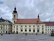 Jesuit Church (Romanian: Biserica Iezuiților), otherwise the Church of the Holy Trinity (Biserica Sfânta Treime), is a Roman Catholic church located at 3 Piața Mare, Sibiu, Romania. Immediately adjacent to Brukenthal Palace, it is one of the most notable baroque churches in Transylvania.