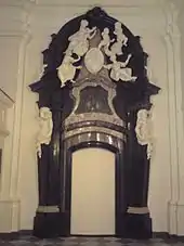 A vestibule was added to the interior of the temple in 1633, and a choir was added three years later.[4] An altar made of silver was installed by Cardinal Charles Ferdinand Vasa in the 1640s.[5] The interior of the church was damaged and looted in 1656.[4]