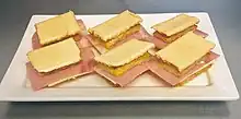 A jesuita (Uruguay) or fosforito (Argentina, lit. "matchstick") is a baked sandwich commonly eaten in parts of South America and considered a classic of Argentinian cuisine.[1][2][3][4] It consists of two pieces of puff pastry filled with thin slices of ham and cheese.[1][2]
