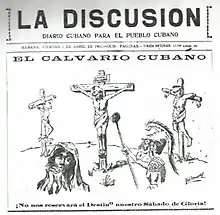 A cartoon drawn by Jesús Castellanos on April 5, 1901, in the Cuban paper La Discusión showed "The Cuban People" represented by a crucified Jesus Christ between two thieves, General Wood and American President William McKinley. Cuban public opinion was depicted by Mary Magdalene on her knees crying at the foot of the cross and Senator Platt, depicted as a Roman soldier, is holding a spear that says "The Platt Amendment" on it. Governor Wood, who saw in Castellanos's drawing an unfriendly gesture toward the United States, gave order to apprehend Dr. Manuel M. Coronado, director of La Discusión and Jesús Castellanos, caricaturist of the newspaper. Both were arrested for criminal libel and held in the Vivac prison of Havana, and the offices of La Discusión newspaper were sealed (Wood was persuaded to release them on the following day).