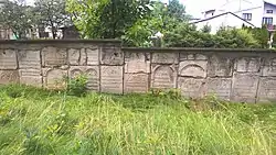 The Jewish Cemetery (Polish: Cmentarz Żydowski w Tarnogrodzie) in Tarnogród was probably established in 1588.[1] Located to the east of the synagogue, it covered an area of 1.8 hectares. During World War II, the Nazi Germans occupying Poland desacrated and destroyed the cemetery.[2] A few decades after the end of the war, from 1986 until 1990, the cemetery was renovated and partly surrounded by a wall to mark and protect it.[3] Around 100 pieces of recovered tombstones were placed within the area.[4] Some of the tombstones were embedded into the wall, becoming the so-called "commemoration wall". There is a monument to the memory of Poles of Jewish origin from Tarnogród who were murdered by the Germans in 1942.