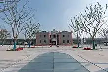 Jiaxing Station was built at the same time with the Shanghai-Hangzhou Railway in the 33rd year of Qing Guangxu (1907) and opened in 1909. The station building is located in Yangqiao Cave,[3] Dongmen, Jiaxing Old Town, 110 kilometers away from Shanghai Station (North Station) and 91 kilometers away from Hangzhou Station. It was one of the largest stations on the Shanghai-Hangzhou Line at that time.[4] When it was first built, the station house was two floors, covering an area of 4,800 square feet (446 square meters). The roof was renovated in 1915 . The station has an upward side platform with a length of 650 feet and a width of 30 feet and an island platform with a length of 840 feet and a width of 27 feet. There is a floor between the two Road connection .