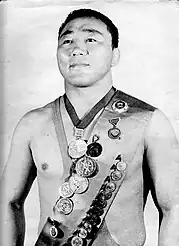 Jigjidiin Mönkhbat (Mongolian: Жигжидийн Мөнхбат; 1 June 1941 – 9 April 2018) was a Mongolian wrestler. At the 1967 World Wrestling Championships Jigjidiin Mönkhbat held a bronze medal after defeating the Olympic champion Hasan Güngör. At the 1968 Summer Olympics he won the silver medal in the men's Freestyle Middleweight category (87 kg), behind gold medalist Boris Michail Gurevich of the Soviet Union and ahead of bronze medalist Prodan Gardzhev of Bulgaria.[1] His results in the Olympics were 4 wins, 2 draws, and 0 losses.