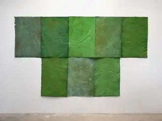 Over the next decade in New York, O'Bryan studied art theory and criticism at New York University with a focus on feminist performance art, the body and identity, earning a PhD in 2000.[5][7] She also began to exhibit her work, appearing in group shows at Exit Art and ABC No Rio, among other venues. Her early work moved from more traditional landscape painting to abstracted, internalized landscapes, before turning toward the process-oriented mark-making for which she has gained recognition.[13][5] In her later career, she has had solo exhibitions at Gallery Joe (Philadelphia, 2012),[15] Center for Contemporary Arts (Santa Fe, 2017),[4] Texas State Galleries (2018),[16] Margarete Roeder Gallery (New York, 2018, 2019)[12] and Zane Bennett Contemporary Art (Santa Fe, 2022).[1]