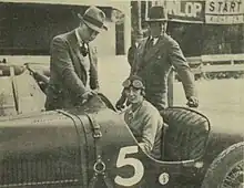 Along with her first husband, William Berkeley "Bummer" Scott, she lived in a large house Grasmere, in Old Byfleet[3] near the Brooklands race track in Surrey, England, and the couple were early and enthusiastic collectors of automobiles.[2] They bought their first Sunbeam Indianapolis shortly after their marriage and quickly added several Bugattis to their collection.[2] Their cars all wore a distinctive black livery with emerald green wheels, and the couple collected frequent trophies racing their Bugattis at the nearby track.[2][4] Following the death of J. G. Parry-Thomas, they bought two of his cars, one of which, the 2-litre 1924-type Grand Prix Sunbeam,[5] Scott used to exceed 120 miles-per-hour on the Brooklands track, (a lap at 120.88 m.p.h.) in September 1928. She was the woman to do so and earned the right to display a coveted British Automobile Racing Club badge acknowledging the achievement.[2][1][6] In 1928 she became the first woman elected to the British Racing Drivers' Club.[1]