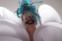 Soon after graduating from college, Mayer was commissioned to create an experimental performance for Miami Light Project's 2010 Here & Now theater festival.[5] The result was a short satirical musical called Mrs. Ms in which Mayer attempts to marry her pet Chihuahua, only to discover that he has been unfaithful.[6][7] Also in 2010, she created a series of painted cut-out boards called "Getting to Know You", similar to cut out board scenes, including a series of photos posing with the boards.[8][9]