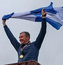 ![]() Gannon celebrating winning the National League North as Stockport County manager in (April 2019) | |||