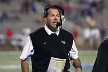 Jim Hofher (born October 12, 1957) is an American football coach and former player. He served as the head football coach at Cornell University from 1990 to 1997 and at the University at Buffalo from 2001 to 2005, compiling a career college football record of 53–84. Hofher was the quarterbacks and wide receivers coach of the Atlanta Legends of the Alliance of American Football (AAF) in 2019.[1]