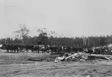 The entire Jimna operation including timber cutters was controlled by Hancock and Gore Ltd. Once re-erected in 1922, the mill at Jimna was enlarged and in 1924 it was capable of turning out 80,000 super feet of sawn pine weekly. Initially the mill cut only hoop pine using steam-driven saws. In 1933 the Architectural and Building Journal of Queensland reported that Jimna Mill milled approximately 23,000 feet (7,000 m) of logs into wide boards and building timbers each day while the top logs were milled into case timber. At Brisbane the building timbers were planed on Hancock and Gore's planning machines and manufactured into all kinds of building timbers including lining boards and flooring. The case timbers were re-sawn and manufactured into butter boxes, jam cases, fruit cases, kerosene cases etc. Specially selected logs were transported to Brisbane for manufacture into "Bull-dog" plywood and Hancock and Gore Ltd high class joinery. Bringing timber to the mill were 15 bullock teams and 11 lorries, while five lorries delivered the sawn and seasoned timber to Kilcoy railway station for transportation to Hancock and Gore establishments in Brisbane. The record for the greatest daily output of pine was 48,000 super feet in 8 hours and for 10 hours work on the same day the cut was 64,500 super feet.[1]