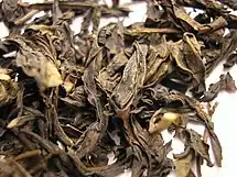 Jin Fo tea (Chinese: ; pinyin: jīn fó chá; lit. 'Gold Buddha tea'; pronounced [tɕín fwǒ ʈʂʰǎ]) is a Wuyi Oolong tea, developed at the Wuyi Shan Tea Researching Center located in Fujian Province, China. It is a medium Wuyi Oolong showing both creaminess and a floral aftertaste. The tea leaves have a uniform emerald green colour.