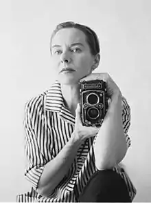 While performing in Hollywood, Florida with the Sweathearts of Swing[4] during World War II, she met her husband-to-be, Carl Dellaccio, who was serving in the Navy. “We talked every night. That was the end of it for me," Jini said.[5] After the war the couple moved to Chicago, Illinois, where Carl attended the University of Chicago, via the GI Bill.[2] After they married in 1946,[4] Jini continued playing music professionally for a while, then began attending the Art Institute of Chicago,[6] where she studied painting and became interested in photography, purchasing a $70 used Leica at Altman's, a Chicago camera shop.[7]