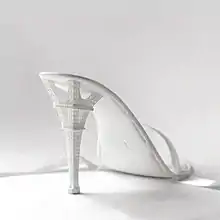 In 2004, Freedom of Creation was invited to exhibit at the Dyson showroom in Paris, for this event, Evenhuis designed the first 3D printed shoe ‘FOC Paris’.