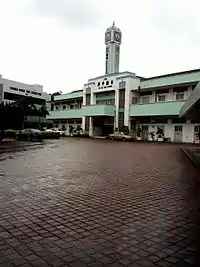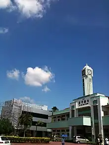 View of Jit Sin Independent High School Clocktower after rain.
