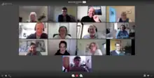 Jitsi Meet is an open source JavaScript WebRTC application used primarily for video conferencing. In addition to audio and video, screen sharing is available, and new members can be invited via a generated link. The interface is accessible via web browser or with a mobile app.[38] The Jitsi Meet server software can be downloaded and installed on Linux-based computers.[39] Jitsi owner 8x8 maintains a free public-use server for up to 100 participants at meet.jit.si.[40]
