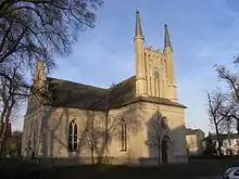 Joachimsthal was founded in 1601 by Elector Joachim III Frederick of Brandenburg at the foot of medieval Grimnitz Castle and received town privileges in 1604. The Elector had a glass foundry erected and in 1607 established a boarding school, the Joachimsthalsches Gymnasium, that was relocated to Berlin after its devastation in 1636 during the Thirty Years' War. After a blaze in 1814, the church and several houses were rebuilt according to plans by Karl Friedrich Schinkel.
