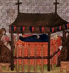 Joan died in 1305, allegedly in childbirth, but the bishop of Troyes, Guichard, was arrested in 1308 and accused of killing her with witchcraft. He was released in 1313.[14] Joan was buried at the Cordeliers Convent in Paris.[15]