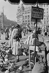 In the 1950s UDC resumed more structured clandestine organizational life.[107] With theoretically supreme governing body Consell Nacional meeting once a year,[108] it empowered Commissió Permanent - Roca its member - to act in-between the sessions.[109] Since 1945 allowed to travel abroad Roca became active in the world of European Christian Democracy network; in 1950 UDC applied for membership in Nouvelles Equipes Internationales, later Union européenne des démocrates-chrétiens.[110] His role on the international arena was made easier as Roca knew many European democristianos from Secretariado Internacional de los Partidos Democráticos de Inspiración Cristiana[111] and remained within the circle of Maritain's followers.[112] The 1952 Eucharistic Congress, staged in Barcelona, turned into a major success of the UDC activists; working extensively to prepare its agenda, Roca persuaded ecclesiastical hierarchs to drop pro-Francoist tones.[113] Security services of the regime were aware of his activities,[114] though he was spared heavy repressive measures; once briefly detained, he was questioned by the police also in few other cases.[115] On the other hand, in the mid-1950s he already enjoyed a fairly prestigious status in the Barcelona societé, acknowledged by official press in the "sociedad" columns.[116]