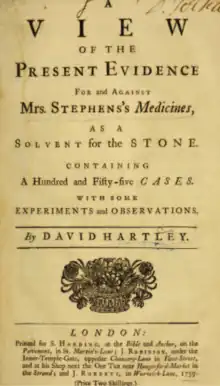 - ↑ Hartley, David (1738). Ten Cases of Persons who Have Taken Mrs. Stephens's Medicines for the Stone. S. Harding, and J. Roberts.