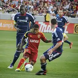 ![]() Plata playing against the Chicago Fire on May 25, 2013 | |||