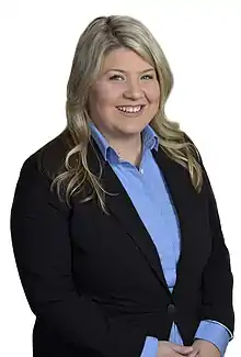 Jodie Wickens is a Canadian politician, who served in the Legislative Assembly of British Columbia as a British Columbia New Democratic Party MLA for the Coquitlam-Burke Mountain electoral district. She was elected on February 2, 2016, in a by-election, defeating BC Liberal Party candidate Joan Isaacs and Green Party of British Columbia candidate Joe Keithley with 46% of the vote.[1] In the 2017 provincial election, she was narrowly defeated by Joan Isaacs, who received 87 more votes.