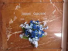 Carcione married Madeline Ahern in 1937. They had three children.[11] He died of intestinal cancer at Peninsula Hospital in Burlingame, California on August 2, 1988 and was entombed at Holy Cross Cemetery in Colma, California.